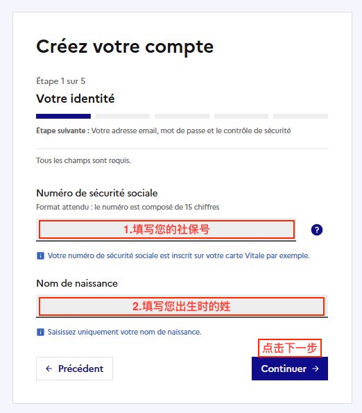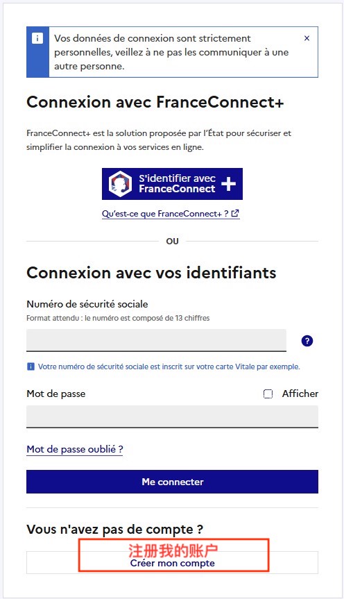 注册完成,返回首页再次点击“S’identifier”,输入社保号和设置的密码就可以登陆账户查看自己的个人界面了。