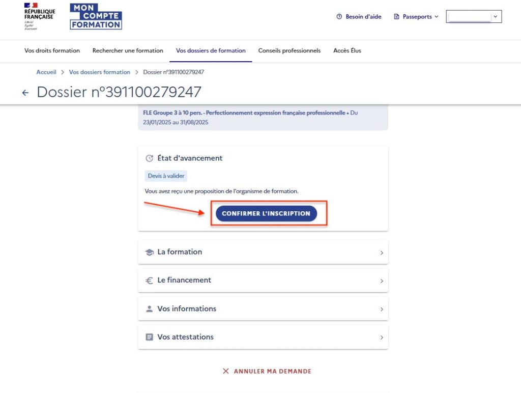 首先,点击下方链接,下载并填写由 « Mon Compte Formation »官网提供的“Formulaire de demande de vérification d’identité pour l’achat de formation CPF”。