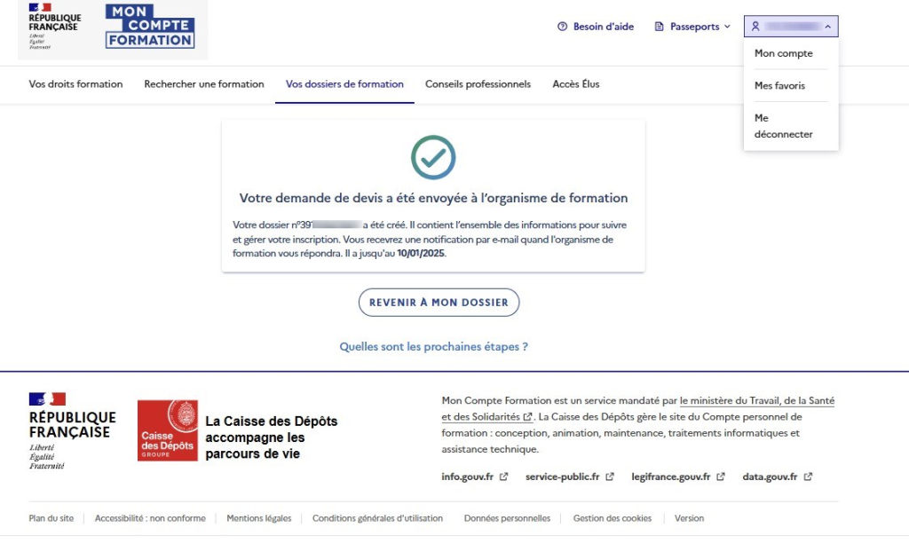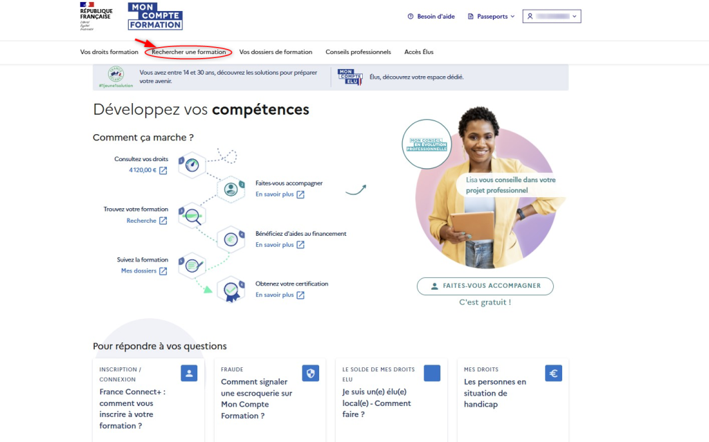 首先,点击下方链接打开 « Mon Compte Formation »官网: